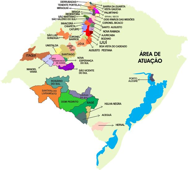 A COTRIJUI representa mais de 18.500 associados distribuídos em mais de 42 municípios no Rio Grande do Sul; tem sedes em Ijuí e Porto Alegre; frigorífico em São Luiz Gonzaga, pólo arrozeiro em Dom Pedrito e participação acionária no terminal do Porto de Rio Grande.