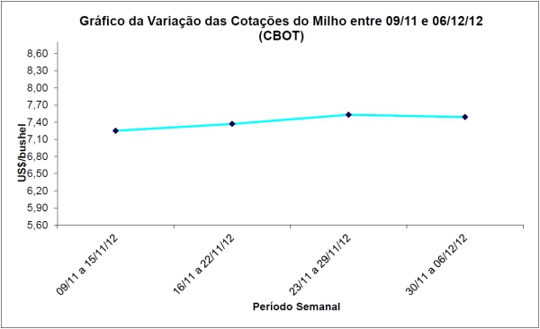 Abaixo segue o gráfico da variação de preços do milho no período de 09/11 a 06/12/2012.