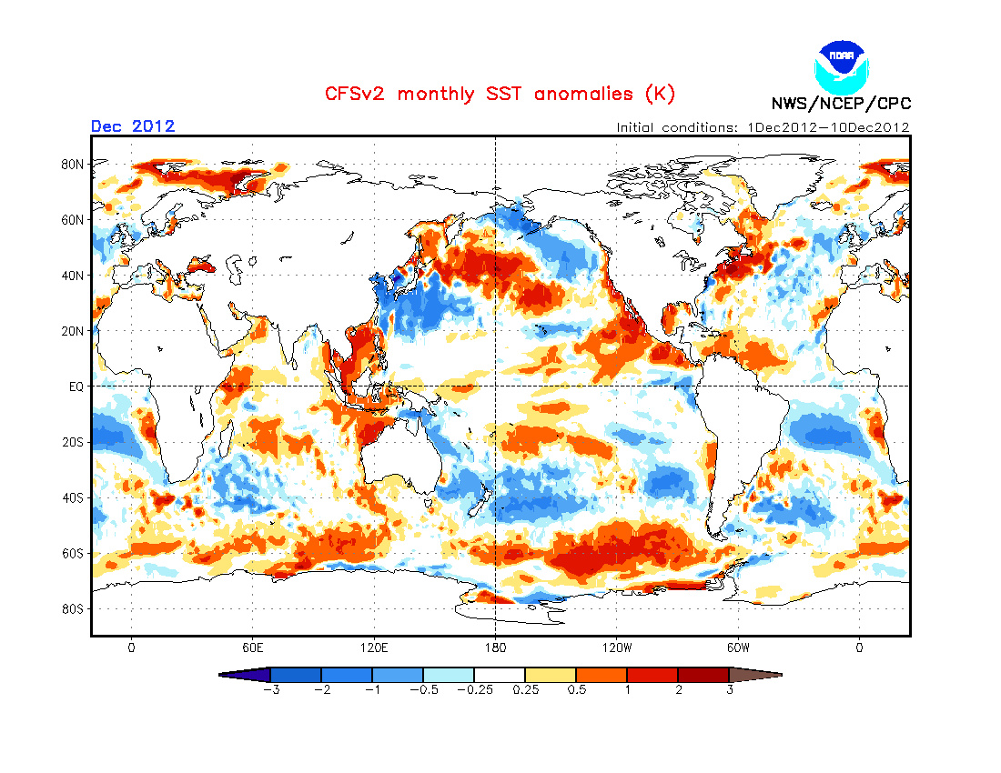 Depois de muitas variações ao longo do ano, chegamos ao final de 2012 em uma condição de oceanos nem quentes e nem frios, com uma relativa neutralidade.