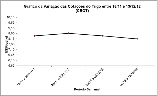 Abaixo segue o gráfico da variação de preços do trigo no período entre 16/11 a 13/12/2012.