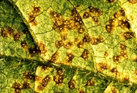 Esta doença ataca a parte aérea da planta e pode aparecer em qualquer fase de seu desenvolvimento, sendo mais frequente na floração. A infecção se favorece do clima quente e úmido e a disseminação ocorre em períodos secos.