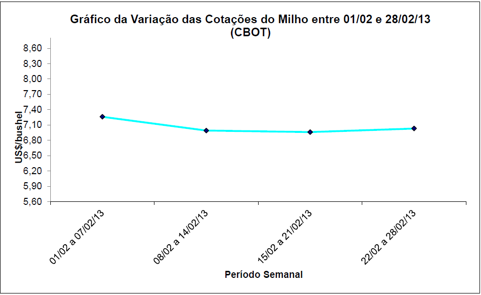 As cotações do milho em Chicago se recuperaram um pouco nesta semana, fechando a quinta-feira (28) em US$ 7,19/bushel, após US$ 6,90 no final da semana anterior. A média de fevereiro ficou em US$ 7,10, após US$ 7,14/bushel em janeiro.
