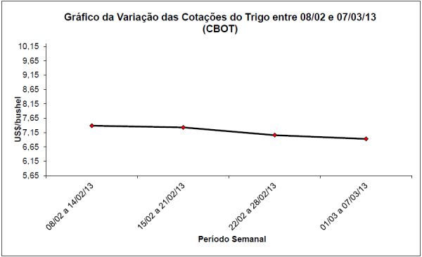 Abaixo segue o gráfico da variação de preços do trigo no período entre 08/02 a 07/03/2013.
