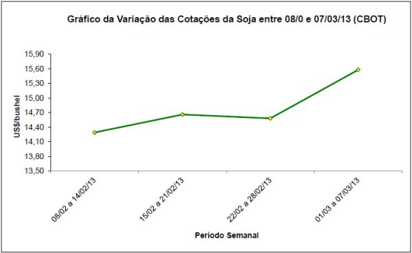 Abaixo seguem os gráficos da variação de preços da soja e seus derivados no período de 08/02 a 07/03/2013.