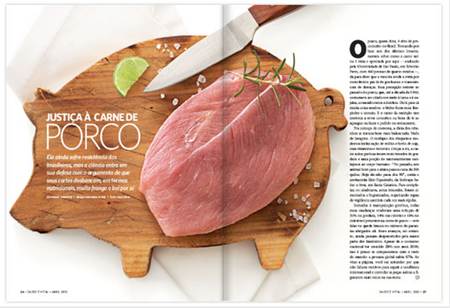 Ilustrada com cortes suínos, a matéria apresenta dicas de como algumas partes do suíno podem ser mais saudáveis que as carnes boi e de frango. Como exemplo, a revista cita o lombo suíno, localizado no dorso do animal, que é uma das peças mais magras e nutritivas. Apenas 100g do corte contém 35,7g de proteínas, 6,4g de gorduras, 103 mg de colesterol e 0,5mg de ferro, com apenas 210 calorias. Já a mesma quantidade de coxa de frango contém 215 calorias, sendo 28,5g de proteínas, 10,4g de gorduras, 1453 mg de colesterol e 1,2mg de ferro.