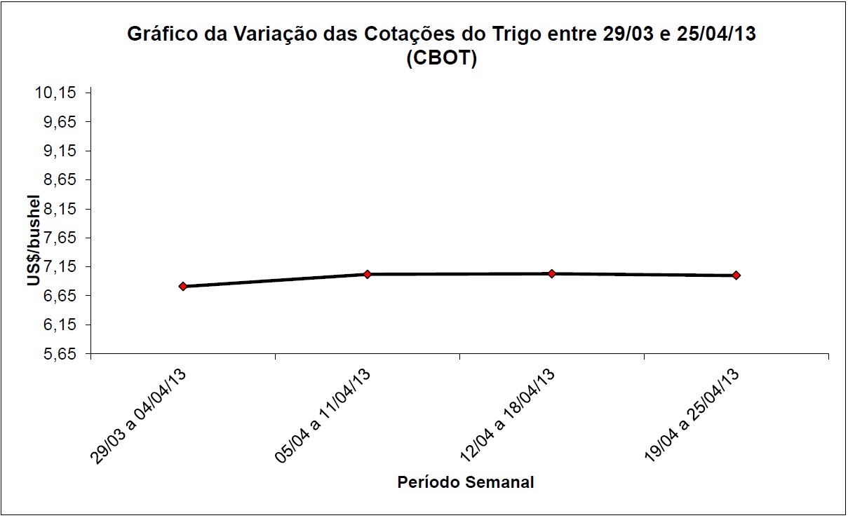 Por sua vez, as inspeções de exportação estadunidenses de trigo somaram 676.221 toneladas na semana encerrada em 18/04. No acumulado do ano 2012/13, iniciado em 1º de junho de 2012, tem-se 23,7 milhões de toneladas, contra 24,4 milhões no mesmo período do ano anterior.