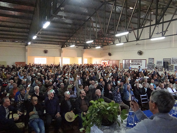 A Cotrijui esta realizando hoje (11), a Assembleia Geral Extraordinária. O evento, foi descentralizado em três pontos para facilitar o acesso dos associados. No primeiro momento, pela manhã, em Santo Augusto, mais de 1200 associados aprovaram por aclamação, de forma unânime, a operação de crédito, no valor de 200 milhões de dólares, além do plano de aplicação.