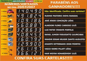 Rudinei Pastorio, cliente da COTRIJUI, residente em Rincão dos Paiva, Nova Ramada / RS tá feliz da vida. Conferindo suas cartelas da PROMOÇÃO DE ANIVERSÁRIO 50 ANOS DA COTRIJUI, identificou consigo, a cartela de número 491.824, contempladora de uma Moto Yamaha YBR 125cc Zero KM.