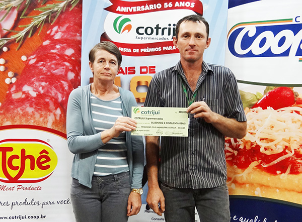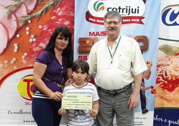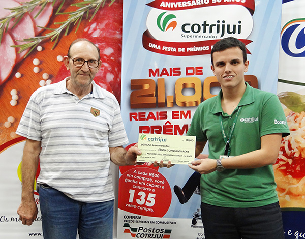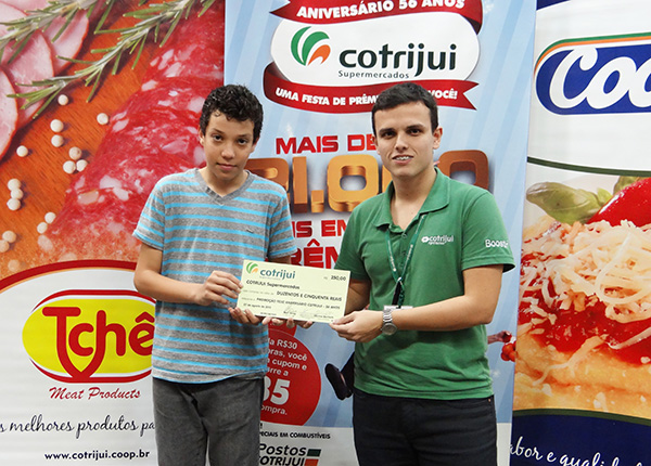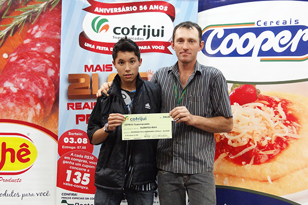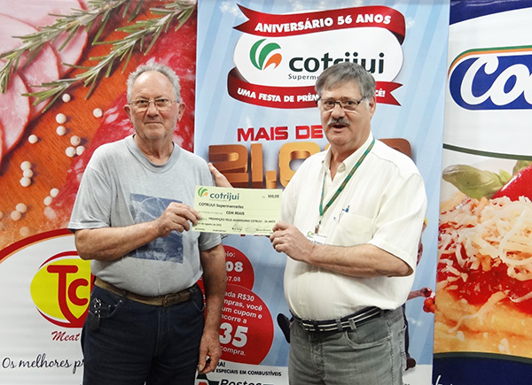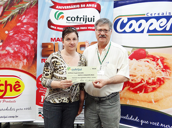 Em ato realizado, há poucos instantes, em todos os Supermercados Cotrijui, houve entrega de vales-compra relativos à Campanha Feliz Aniversário COTRIJUI, comemorativa aos 56 anos da Cooperativa. Foram distribuídos, entre as 18 lojas, mais de 21 mil reais em prêmios.