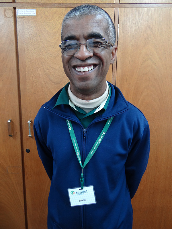 Um dos exemplos de sucesso, pelo carisma que conquistou entre colegas e clientes, é o empacotador do Supermercado da sede, em Ijuí, Jorge Madruga Junior, que é vastamente conhecido e carinhosamente chamado de BINHO. Ele exerce a função, como relatou, “com muito amor à causa que defende”. Binho está trabalhando em nosso Supermercado há mais de 7 anos.