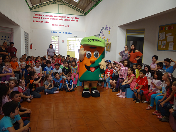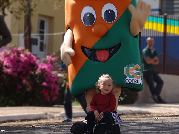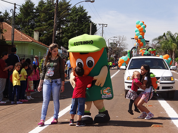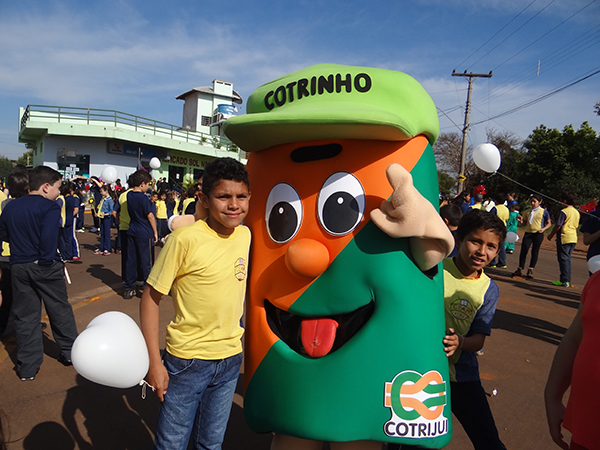 Em parceria com os Supermercados, o Departamento de Comunicação da Cotrijui prossegue na campanha de incentivo ao evento para comemorar o dia da Criança. Neste sentido, na sexta-feira (06), a comitiva liderada pelo COTRINHO visitou a criançada nas Escolas de Jóia. Foi sucesso total! O personagem foi a sensação das crianças. No sábado (07), com o mesmo intuito, o COTRINHO com a equipe do Mercado Cotrijui foi a grande sensação do Desfile Civíco na comunidade de Jóia.