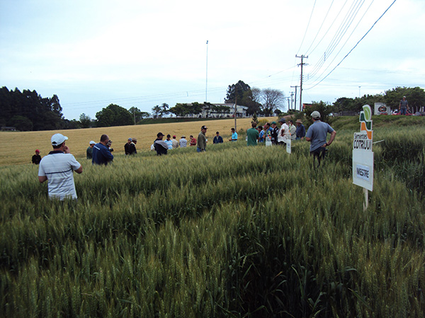 Foi realizado no último dia 11 de outubro, na unidade de Tenente Portela, um dia de campo, onde foi demonstrado diversas cultivares de trigo (23 no total), sendo que a maior parte delas são cultivares novas. O evento teve a presença de um grande número de associados, além do departamento técnico da unidade e do Engenheiro Agrônomo Mario Luis Fossatti, da unidade de Santo Augusto.