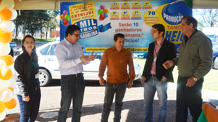 Colocando em prática com a setorização das atividades, seguindo diretrizes da Direção da Cotrijui, ocorreu sábado (10), o lançamento pelos Postos Cotrijui da Campanha “De Tanque cheio”, ação que transcorre de 10 de maio a 19 de julho de 2014. Nessa promoção a cada 30 reais em qualquer produto adquirido na rede de Postos Cotrijui (5 unidades na região), o cliente recebe um cupom para concorrer a 4 mil litros de combustível, distribuídos em 60 vales combustível de 50 litros e 10 vales combustível de 100 litros. Os sorteios ocorrem dias 7, 14, 21 e 28 de junho, 5, 12 e 19 de julho. No lançamento neste sábado a Promoção dos Postos Cotrijui teve grande participação de associados, clientes e fornecedores. Pela Direção da rede de Postos no ato de lançamento falou o Diretor do segmento, Uilson Doneda. Pela Cotrijui se pronunciou o Presidente Vanderlei Fragoso.