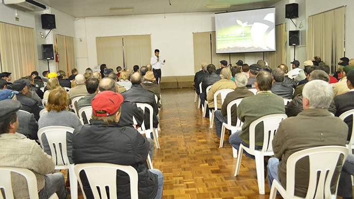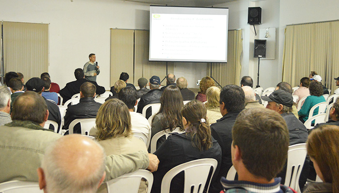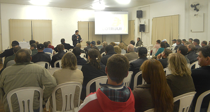 Fazendo parte do Plano de Reestruturação, Saneamento e Revitalização, coordenado pela Direção, a Cotrijui em parceria com a empresa Syngenta, promoveu ontem (29), a noite na Afucotri de Ijuí, reunião técnica. O evento teve o prestígio do Vice-Presidente da Cooperativa Paulo Schossler, do Secretário Ivan Schowantz, do Diretor do Setor de Agropecuária Nelson Smola e do Diretor Administrativo, Paulo Medeiros, além de equipes dos Departamentos Agrotécnico, Sementes e de Comercialização. Igualmente se fizeram presentes os representantes da Syngenta, Danilo Real e Pedro Scarton. A saudação aos participantes coube em nome da direção da Cotrijui por Nelson Smola. Pelo setor de sementes falou o Engenheiro Agronômo Darci Lorenzon e pela área de comercialização, Paulo Breitembach. No caso da Syngenta falaram Danilo Real e Bruno Monção. Na oportunidade a pauta foi sobre, a apresentação dos resultados das áreas demonstrativas e de produção de sementes de soja na área de ação da Cotrijui, safra 2013/14, campanha de tratamento industrial de semente de soja 2014 e ainda o posicionamento de Elatus, novo fungicida para controle de ferrugem da soja da Syngenta. Um grande número de associados da Cotrijui participou ativamente do evento, reforçando o interesse nas ações que vem sendo desencadeadas pela Direção da Cooperativa, cujos resultados como reforça o Presidente Vanderlei Ribeiro Fragoso, vem se consolidando de forma gradativa, lenta mas sólida. Outras reuniões técnicas vão ocorrer nas demais regiões. A próxima já está agendada para o dia 3 de Junho de 2014, próxima Terça-feira com início às 19 horas em dependências da Afucotri de Tenente Portela, ensejando a participação de associados daquela região.