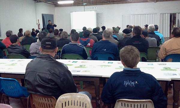 Finalizando o cronograma, no dia 26, igualmente pela manhã, acontece a Pré Assembléia em Dom Pedrito, com produtores daquela comunidade e Bagé. O Presidente da Cotrijui destaca que o objetivo destas Pré Assembléias visa discutir a segunda etapa do Plano de “ Reestruturação, Saneamento e Revitalização”. Ainda ontem, na reunião propositiva de Tenente Portela, falou o Engenheiro Agrônomo (Cotrijui) Mario Fossatti, que deu detalhes do Plano de Negócios lançado pela Cooperativa, com seu importante parceiro comercial, a SYNGENTA. Igualmente fez referências aos materiais disponíveis para soja, por intermédio da mesma parceria (Cotrijui/Syngenta).