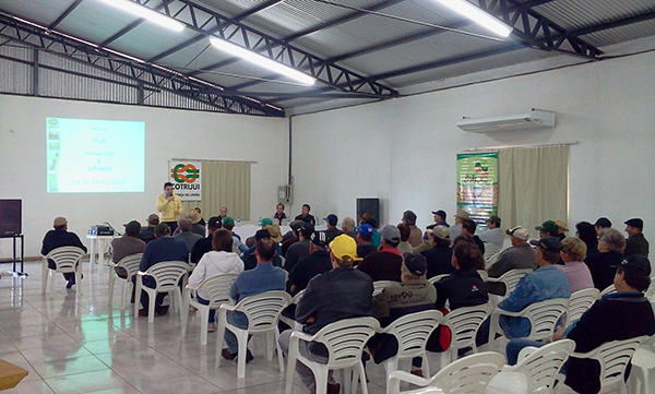A Direção da Cotrijui promoveu na manhã de hoje (10 de junho), Reunião propositiva (técnica) no Município de Ajuricaba. O encontro realizado na Afucotri teve boa afluência de associados, que foram conhecer ações da Cooperativa em parceria com a Syngenta visando a próxima safra de soja.