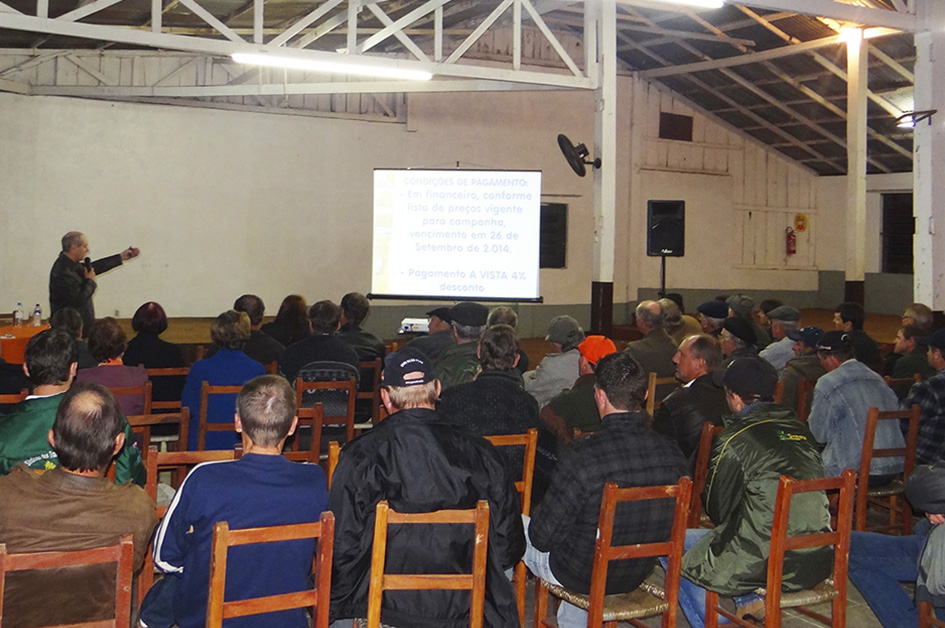Na oportunidade, em parceria com a empresa Syngenta, a Cotrijui apresentou aos presentes o plano de negócios visando a safra de soja. Os associados tiveram oportunidade de conhecer as variadas alternativas de produtos e serviços na parceria Cotrijui-Syngenta, além de descontos e outros benefícios. Fruto desses encontros técnicos, já estão sendo efetuados negócios, com projeção de que os produtores estão cada vez mais convictos da importância de formar uma boa lavoura, com a garantia de obter resultados bem acima da média.