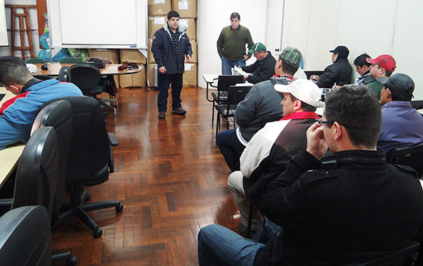 Seguindo orientação da Direção Geral, a Cotrijui e parceiros comerciais, vem estabelecendo ações que visam atualizar e repassar tecnologia de ponta aos funcionários nos mais variados setores. Um exemplo ilustrativo, é o treinamento que está em andamento durante esta sexta-feira (25) na sede (Ijuí). Consiste de orientações sobre manuseios, produtos e novas tecnologias para qualificar ainda mais o programa de tratamento industrial de sementes, área em que a Cooperativa é referência. A capacitação ora em execução está sendo ministrada pelo especialista Danilo Silva, que atua na Syngenta. Participam todos os colaboradores que desempenham funções no programa de tratamento de sementes da Cotrijui.