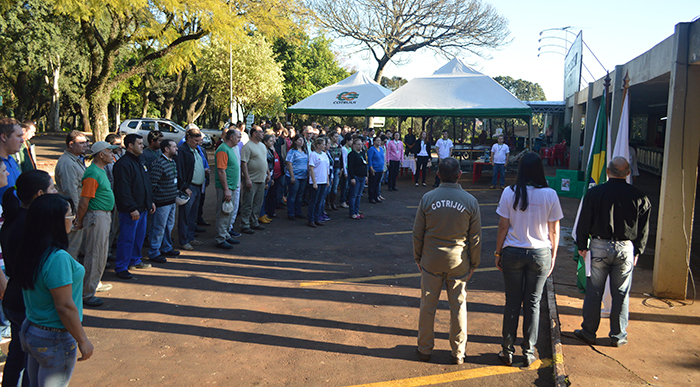 Tendo por local o estacionamento da Cooperativa, aconteceu no inicio da manhã desta segunda-feira (08/09) a abertura oficial da SIPAT (Semana Interna de Prevenção de Acidentes no Trabalho), Cotrijui e Redecop. A solenidade foi marcada pelo cântico do Hino Nacional Brasileiro, além de mensagens do Coordenador de Comunicação, Adelar Amarante, da Presidente da CIPA da Cotrijui, Tania Strada, do Vice-Presidente da Cipa da Redecop, Matheus Altissimo, do Engenheiro de Segurança, Arno Feigel e do Diretor de Produção Agropecuária da Cotrijui, Nelson Smola.