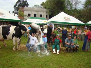 Nesta 19º edição da Feira Agropecuária tivemos uma agradável surpresa, ao ser batido o recorde sul-americano de produção na raça holandesa, com 102,06 kg. A vaca “Asproleite Polônia 2335 Throne”, de 5 anos, de propriedade de Luiz Romano Bogorny, do município de Selbach, conseguiu bater seu próprio recorde obtido na Expointer 2008 de 94,14 kg. Com 80,22 kg, o 2º Lugar da raça holandesa foi ostentado pelo animal de propriedade do Associado da COTRIJUI, Sr. VOLMAR MARTINS.