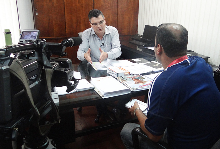 O Presidente-Liquidante da Cotrijui - Cooperativa Agropecuária Agroindustrial, com a continuidade dos negócios Vanderlei Ribeiro Fragoso, recebeu na tarde de hoje (23) uma equipe de Reportagem da RBS TV. Na oportunidade o dirigente cooperativista conversou com o repórter Everson Dorneles, quando abordou temas como a moratória extra-judicial que está sendo implementada desde o dia 27 de Setembro deste ano, além de outros assuntos de interesse dos associados. A matéria especial será apresentada pela RBS TV na semana que vem num dos principais Telejornais da Emissora.