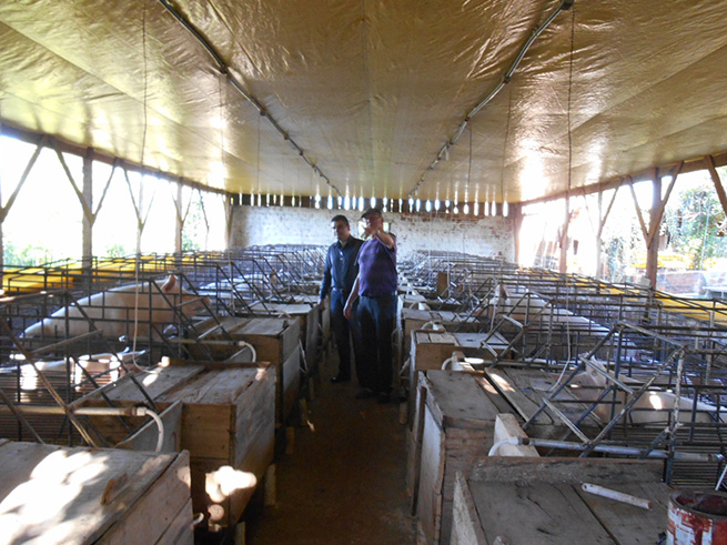 A exemplo dos demais produtores integrados que participam do importante segmento no desenvolvimento econômico da Cotrijui, que envolve desde a produção da matéria prima (milho), fabrica de ração e Indústria Frigorifica, o Presidente Liquidante da Cotrijui - Cooperativa Agropecuária e Industrial em moratória espontânea com sequência dos negócios, Vanderlei Ribeiro Fragoso, visitou ontem (22) a exemplo das reuniões de base, o produtor de suínos Jaime Evelásio Renz, com propriedade no Município de Três Passos. Essa postura do Dirigente cooperativista visa fortalecer cada vez mais a aproximação da Cooperativa com os cooperados. No local, Fragoso conheceu em detalhes a estrutura dessa propriedade. Na área de atuação da Cotrijui existem complexos que envolvem “UPLs, Creches e Terminação de suínos”. Nas UPLs os animais permanecem até 7 a 9 quilos; nas Creches até 25 e na terminação em média 120 quilos. Mediante agendamento prévio o Presidente Fragoso prosseguirá com visitas a outras granjas produtoras de suínos, prestigiando associados da Cooperativa.
