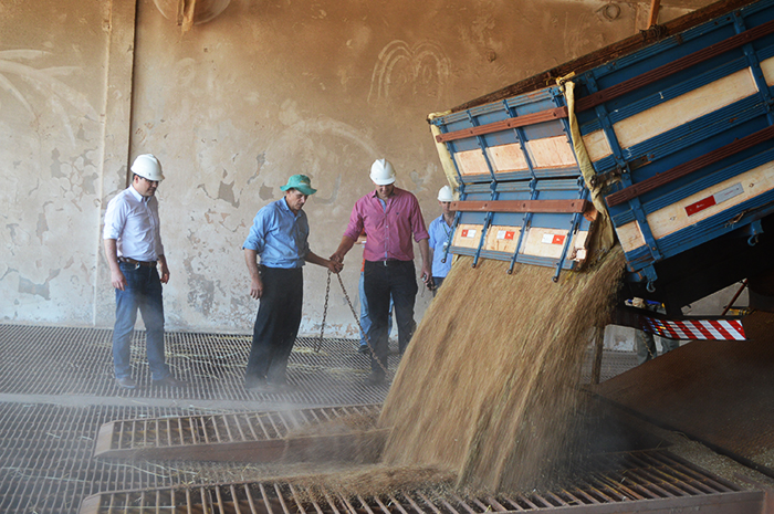 O depósito de grãos (neste momento trigo), está acelerado na unidade da Cotrijui, no Município de Chiapetta. Dados apresentados hoje (28) pelo Presidente/Liquidante da Cotrijui - Vanderlei Ribeiro Fragoso, confirmam que o volume de produto recebido naquele local é muito bom. Pela manhã, nesta terça-feira, o Presidente Fragoso, o Diretor de Produção Agropecuária, Nelson Smola, e o Gerente da unidade, Eder Cronst, prestigiaram a chegada de trigo das propriedades dos associados: Albino Rietter Küller, Eleno Cadore e Valmir Botega. O armazém da Cotrijui em Chiapetta tem capacidade para cerca de 1 milhão de sacas de grãos (milho, aveia, trigo ou soja). Durante a passagem pela unidade (Chiapetta), o Presidente Liquidante também aproveitou para conferir a situação dos armazéns, espaço que garante condições especiais para abrigar a produção. Em sua visita a Chiapetta, Fragoso também esteve na Rádio Ciranda FM, 105,5. Na oportunidade concedeu entrevista ao apresentador Luiz Carlos Borges, quando falou sobre a suspensão do Leilão da Agroindústria da Cooperativa (Ijuí), recebimento de grãos, negócios aquecidos em setores como Varejo, Fábrica de Ração, Frigorifico e Beneficiamento de Arroz. Pela manhã, pouco antes das 7 horas, o Presidente da Cotrijui concedeu entrevistas por telefone a outras Emissoras de Rádio, dentre estas a Rádio Repórter de Ijuí, em todas as situações falando sobre o novo e positivo momento da Cooperativa.