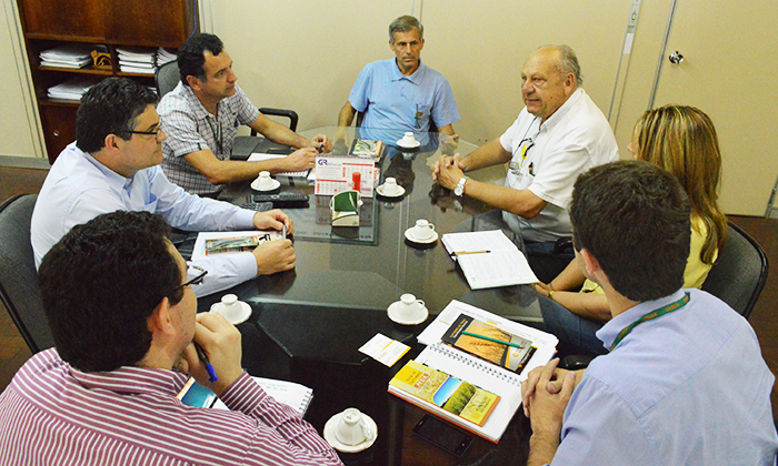 A Direção da COTRIJUI recebeu nesta Terça-feira (04/11), visita de Dirigentes da Fundação Pró-Sementes, importante parceira da Cooperativa. Estiveram em Ijuí o Diretor Técnico-Administrativo, José Hennigen e a Gestora Comercial, Gina Mara Simionato. Ambos foram recepcionados pelo Presidente Vanderlei Ribeiro Fragoso, Diretor Superintendente Gilmar Fragoso, Diretor de Produção Agropecuária, Engenheiro Agronômo, Nelson Smola, Assessor Comercial Uilson Doneda e pelo Engenheiro Agronômo Darci Lorenzon. Na oportunidade, os representantes da Fundação Pró-Sementes destacaram a excelente relação com a atual gestão da Cotrijui, enfatizando foco na variedade de semente de soja “FPS Atalanta IPRO”, material que será disponibilizado aos associados da Cotrijui na safra 2015/2016. A grande novidade e que será multiplicada para 2015 pelos Cooperados da COTRIJUI, é a variedade SOLAR IPRO com tecnologia Intacta RR2.