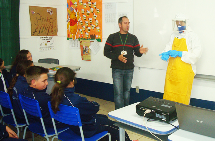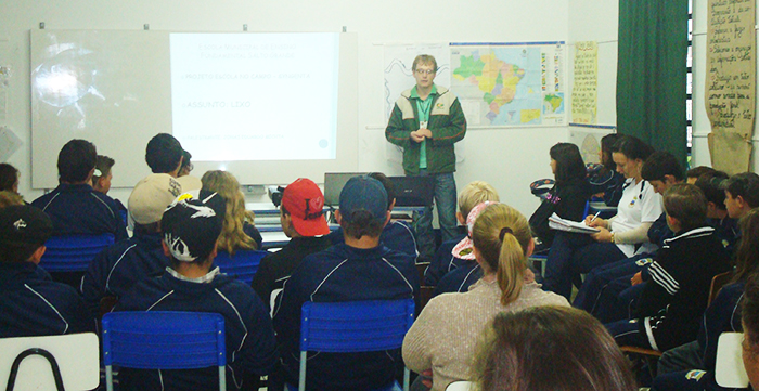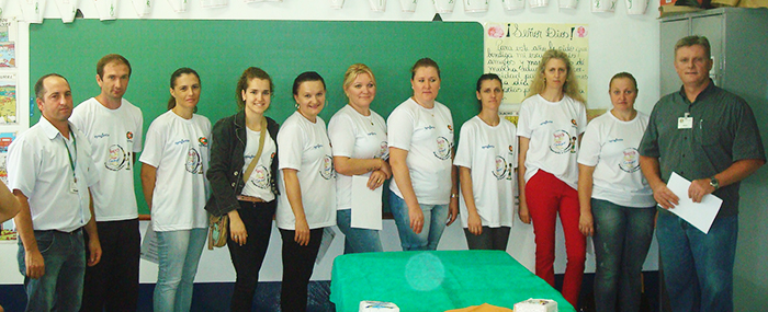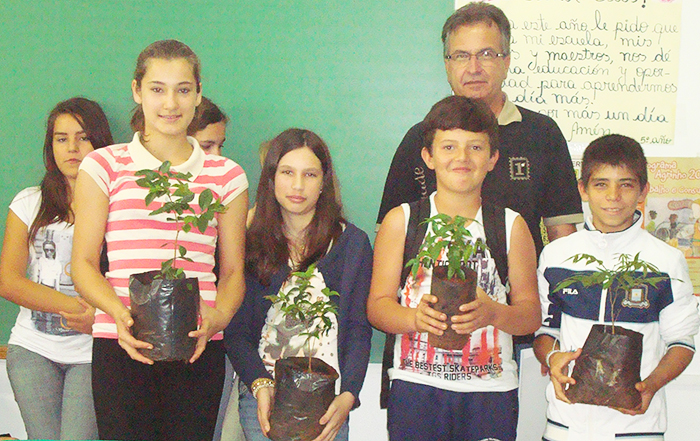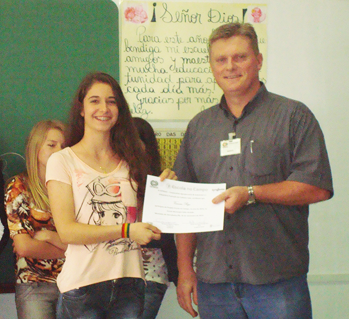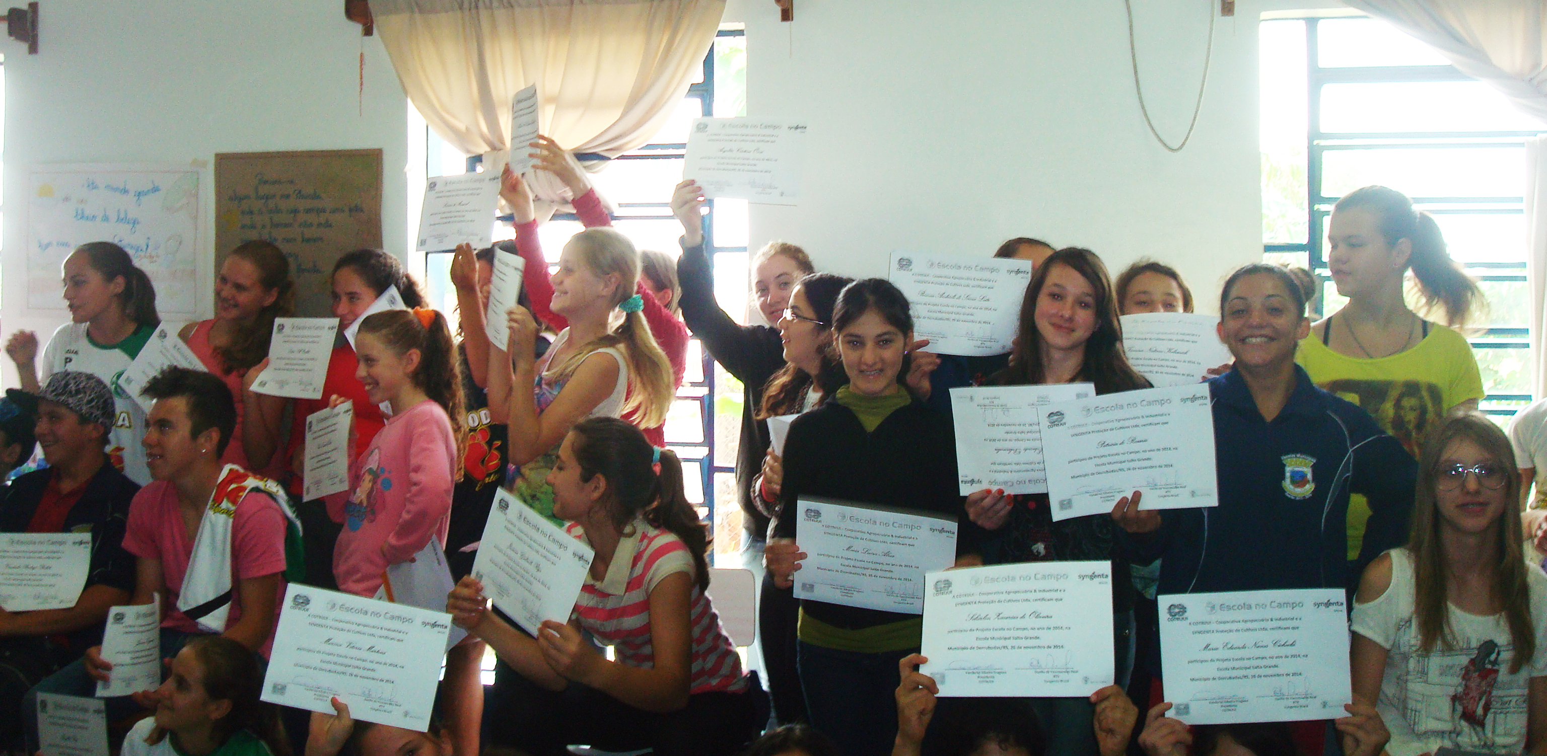 A parceria COTRIJUI/SYNGENTA, concluiu no dia 26 de Novembro de 2014 (semana passada), mais uma etapa do Projeto “Escola no Campo”. A proposta foi desencadeada na região Celeiro, na Escola Municipal Salto Grande, no Município de Derrubadas. Participaram 80 alunos e 17 professores. Além dos conteúdos das cartilhas, os alunos assistiram palestras ministradas pelo departamento técnico da Cotrijui unidade de Tenente Portela. Na confraternização de encerramento do Projeto Escola no Campo, estiveram presentes alunos, professores, o representante da Syngenta Danilo Real, Marcio Woicjekowski, gerente da Unidade da Cotrijui de Tenente Portela, Eng. Agrônomo da Cotrijui Marcos César Lapazini e Jonas Eduardo Michta. Na ocasião os alunos apresentaram as frases que elaboraram sobre a importância do projeto no aprendizado dos mesmos, além de receberam o certificado de conclusão do projeto. O grupo também foi contemplado com mudas de árvores nativas para reflorestamento.