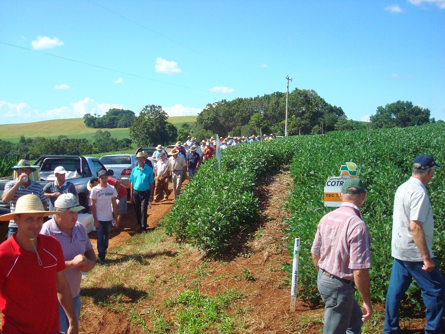 O Departamento Agrotécnico da COTRIJUI, coordenou "dia de campo" na Unidade de Tenente Portela. O evento aconteceu no último dia 09/03/15. Segundo os organizadores, um grande numero de associados presentes ( em torno de setenta associados), alem de lideranças de varios setores, imprensa e convidados estiveram presente. As parcelas com as cultivares de soja apresentaram visual perfeito em relação ao potencial produtivo e principalmente a sanidade. O que mais chamou a atenção dos associados foram as sequencias diferentes de aplicação de fungicida, sendo que cada um conseguiu avaliar os resultados da eficiencia dos fungicidas, principalmente o Elatus. Outro ponto positivo foi o aspecto nutricional das plantas onde houve aplicação de micronutrientes da Ajinomoto.