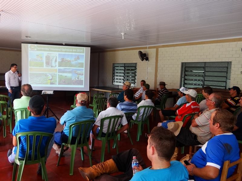 Durante estas oportunidades, os associados e demais presentes, acompanharam de forma detalhada explanações pelo Presidente Vanderlei Ribeiro Fragoso, onde ele focou os resultados da Cotrijui em 2014, projetos para 2015, além de falar sobre o Plano de Negócios da Cooperativa para a Safra de Soja, já em curso em muitos municípios.