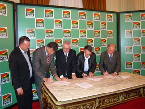 Em ato realizado nesta quarta-feira (10/06) no Palácio Piratini, em Porto Alegre, as direções da COTRIJUI; da COSUEL e da COTRIROSA, firmaram protocolos de intenções para assinarem convênios com a Secretaria Extraordinária da Irrigação e Usos Múltiplos da Água, pelos quais a Secretaria vai operar também com projetos fornecidos pelas cooperativas.