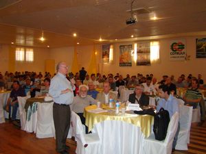 Na ordem dos palestrantes convidados do Encontro Estadual dos Produtores de Milho, falou por fim o consultor Leonardo Sologuren, da Céleres Economia (Uberlândia-MG). Fez declarações cristalinas que acenam para a abertura de importantes espaços para a produção da cultura de milho no Brasil e no estado. As estimativas indicam que até o ano de 2015 o consumo de carne deverá aumentar 6,5 %, ou seja, em média mais que um por cento ao ano. E os gaúchos, pela tecnologia, qualidade do solo e condições de clima tem potencial para atender a demanda crescente por milho. Isso sem falar na produção de energia limpa.