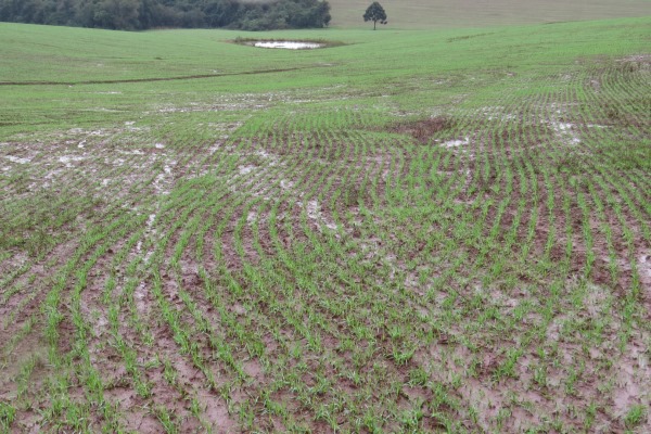 A fase de perfilhamento e o desenvolvimento dos perfilhos viáveis dependem muito da disponibilidade de macronutrientes, principalmente de nitrogênio. Nesse sentido, as pesadas chuvas que ocorreram recentemente em importantes zonas produtoras causaram a lixiviação deste elemento ou mesmo a perda por erosão laminar, explicam os técnicos da Emater/RS-Ascar. Devido ao excesso de umidade presente no solo, os triticultores ficam impedidos de executar a reposição dos adubos necessários às plantas, além de comprometer o controle de invasoras e doenças fúngicas.