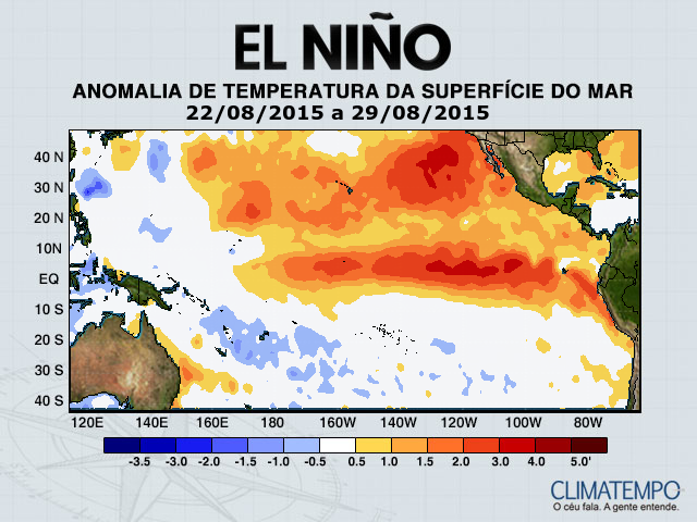 Os modelos climáticos e os especialistas indicam que a superfície na porção leste-central do oceano Pacífico deverá ficar mais de 2 graus Celsius mais quente que a média, potencialmente tornando este El Niño um dos mais fortes desde 1950, com intensidade semelhante às ocorrências de 1972-73, 1982-83 e 1997-88.