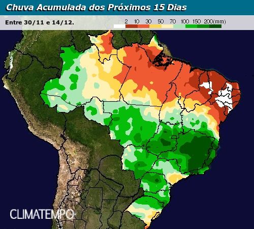 Sobre a Região Sul são esperados esses grandes volumes acumulados de chuva, principalmente pela presença do fenômeno climático El Niño que favorece a persistência dos sistemas que provocam chuva nesta área. No noroeste gaúcho, a previsão registra precipitação entre 100mm e 150mm.
