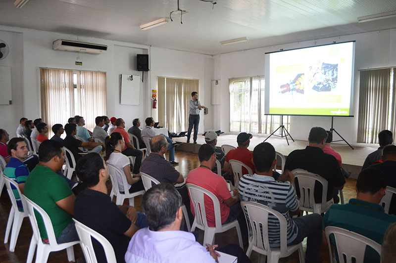 Pela parte da manhã, o palestrante da equipe técnica da Syngenta, Emanuel Fontana, abordou temas visando a capacitação da equipe técnica da Cooperativa, quanto ao bom atendimento e imediata resposta às demandas que os produtores terão a respeito das doenças da soja e arroz e seus respectivos tratamentos, principalmente neste ano de forte incidência do fenômeno El Niño.