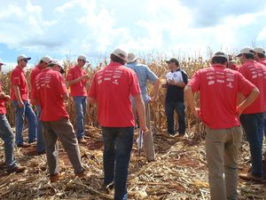 COTRIJUI e SYNGENTA realizaram dia de campo nesta última quinta-feira, 11/02/2010, sobre cultivares de milho e soja da Syngenta. Na propriedade do associado Valdemar Michael, foram observadas as cultivares Tork e Formula, esta última, apresentando um rendimento médio de 115 sc/ha na área demosntrativa. Outra propriedade visitada foi a do Sr. Ademar Baiotto que está conduzindo um "Stripp Test" com clutivares de milho Syngenta, oportunidade onde foram conferidos os híbridos Celeron, Fórmula, Status e alguns pré-lançamentos da cultura. Em tempo ainda, foi realizada uma visita a área experimental do Campo Tecnológico da Cotrijuí, onde foram vistas as cultivares de soja da Syngenta, Syn 9074, Syn 9070, V-Max, Syn 3358 e Syn 1049.