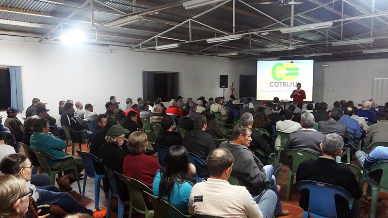 As reuniões contam com a presença do presidente da Cotrijui, Vanderlei Fragoso, que esta abordando diversos assuntos de interesse dos produtores associados, como o relatório de atividades, recebimento e armazenamento da safra de inverno, plano de negócios para cultivo de aveia branca e outros assuntos.