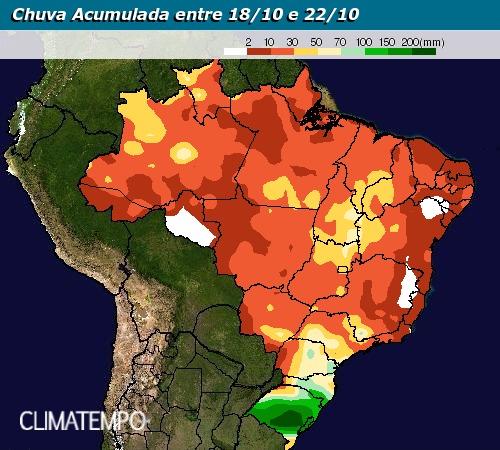 Com o término do bloqueio atmosférico neste próximo final de semana, as chuvas aos poucos estarão retornando ao interior do Brasil de forma mais generalizada, atingindo áreas do Centro-Oeste, Sudeste e até mesmo do Maranhão, Tocantins, Piauí e Bahia a partir do começo da próxima semana. Até lá, as condições ainda continuarão sendo para eventuais pancadas de chuvas isoladas que se estendem até o domingo (23). Assim, algumas áreas continuarão sendo beneficiadas, como a soja que deverá ser replantada enquanto outras áreas estão em pleno desenvolvimento e não apresentam nenhuma redução em seus potenciais produtivos. Vale ressaltar que o padrão meteorológico de chuvas irregulares e calor tem colaborado para um aumento no ataque de pragas como de lagartas.