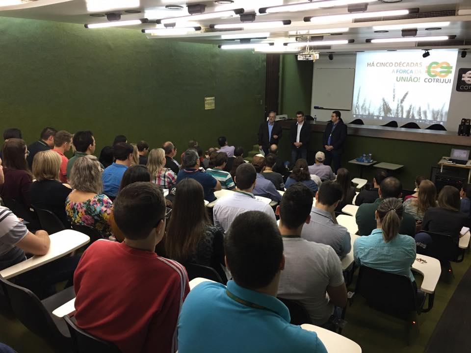 Aconteceu na sexta feira, 06 de outubro, às 08:00hs, a primeira reunião de trabalho do presidente Eugênio Frizzo com os funcionários da administração central da Cotrijui.
