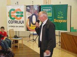 O que cooperativismo tem a ver com o esporte? A resposta a esse questionamento representou uma das motivações centrais da atividade que envolveu colaboradores das quatro principais Cooperativas de Ijuí - COTRIJUI, CERILUZ, SICREDI e UNIMED NOROESTE/RS - no sábado, dia 03 de julho, celebrando o Dia Internacional do Cooperativismo. “Faça do cooperativismo seu esporte preferido” foi o tema escolhido pelas Cooperativas para a programação no Salão da Afucoper. Participaram do evento Diretores e colaboradores das Cooperativas que ouviram Alex Stragliotto, atleta e ex integrante da Seleção Brasileira de voleibol, e assistiram o Grupo Teatral Cara de Pau, de Ibirubá, que apresentou a peça humorística “Atletas do Cooperativismo”.