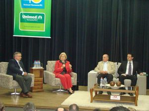 Iniciando a programação alusiva aos seus 40 anos de fundação a UNIMED Noroeste convidou a senadora eleita e jornalista Ana Amélia Lemos, que entremeou seus pontos de vista sobre o tema proposto com mais três painelistas: Alcides Mandeli, médico, Presidente do Instituto Federação UNIMED RS; Leandro Zambon, médico, presidente da UNIMED Noroeste e Carlos Domingos Poletto, presidente da COTRIJUI – Cooperativa Agropecuária & Industrial.