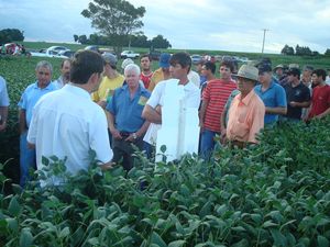 A COTRIJUI, Unidade de Jóia/RS, realizou no dia 25 de fevereiro uma Tarde de Campo para apresentar as novas cultivares de soja produzidas e comercializadas para safra 2011/2012 e que levam a marca das Sementes COTRIJUI. Organizado na área demonstrativa da COTRIJUI, junto a escola Estadual Giovani Patias, Esquina São Jorge – Jóia/RS, foram demonstradas as cultivares implantadas em parcelas observando suas características, potencialidades e vantagens em adquirí-las. Todas as cultivares com a tecnologia SYNGENTA, COODETEC, BRASMAX, FUNDACEP, EMBRAPA, NIDERA, PRO-SEMENTES E FEPAGRO.