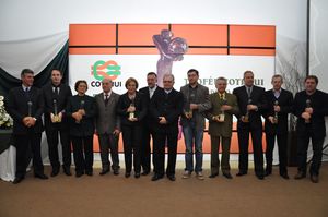 Mantidas as mesmas categorias desde a concepção do Troféu, no evento desta sexta-feira a direção da COTRIJUI prestou pública homenagem as seguintes pessoas, empresas e instituições. O ato de entrega se deu nas pessoas do Presidente Carlos Poletto, Vice-Presidente Luiz Ottonelli e Diretor Secretário Osmildo Bieleski.