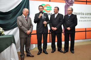 Em solenidade realizada na AFUCOTRI-IJUÍ, nesta sexta-feira à noite (22.07.2011), a COTRIJUI recebeu convidados para a entrega do TROFÉU COTRIJUI 2011, forma de homenagear empresas, instituições e pessoas que têm compartilhado as conquistas da Cooperativa em seus 54 anos completados no último dia 20 de julho. Essa prática foi inaugurada em julho de 2007, ano do cinqüentenário de fundação da Cooperativa e atinge sua quinta edição em gratidão e reconhecimento da COTRIJUI aos que mais se identificam com a prática Cooperativa, em especial no ramo agropecuário.