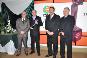 Categoria Propriedade Rural – Empresa Parceria Raguzzoni e Teixeira, da localidade de Espinilho – Dom Pedrito/RS – A fundação da empresa, integradas pelos associados da COTRIJUI, Gilberto Zambonatto Raguzzoni e Moizés Aires Teixeira, deu-se em 1975. Ambos adotaram o sistema de gestão pela qualidade, englobando produção agrícola e pecuária, com destaque para arroz, soja e forrageiras. A empresa investe constantemente em tecnologia e confia sua produção à COTRIJUI. O Senhor Moizés Aires Teixeira recebeu o Troféu.