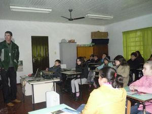 A COTRIJUI realizou no dia 03 de agosto de 2011 uma palestra para os alunos de 6ª série da Escola Municipal de Ensino Fundamental Rocha Pombo, da localidade de Marmeleiro - Augusto Pestana/RS. O Técnico Fernando Dellafavera foi quem abordou o tema “Uma agricultura sustentável” aos atentos alunos.
