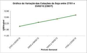 Todavia, em janeiro/12 a China importou 4,61 milhões de toneladas de soja em grão, volume que representa um recuo de 10% sobre o total adquirido no mesmo mês do ano anterior e 15% menos do que foi comprado em dezembro/11. Desse total importado, o Brasil participou com 612.200 toneladas em janeiro/12, sendo que em janeiro do ano passado o país não vendeu soja para os chineses.