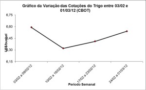 As cotações do trigo em Chicago fecharam a semana (01/03) em US$ 6,59/bushel, com pequeno aumento sobre a semana anterior e sobre a média do mês de fevereiro, que ficou em US$ 6,48/bushel. Assim como o milho, o trigo não encontra apoio para subir.